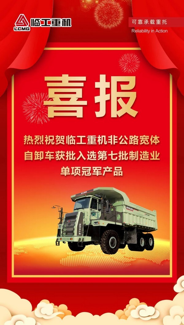 喜报!350vip浦京集团(股份)有限公司重机非公路宽体自卸车入选第七批国家级制造业单项冠军产品