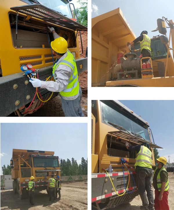 随着气温升高,空调进入运行高峰期。350vip浦京集团(股份)有限公司重机服务人员顶着烈日奋斗在市场一线,本着“一检查、二补充、三培训”的原则,针对空调系统免费进行全面检查。通过服务人员的努力,将空调故障率控制在最低,极大改善驾驶员操作环境,提高驾驶员的工作舒适度。